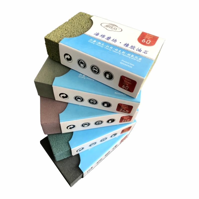 Elastic cleaning grinding block 80 * 50 * 25, 60 #, 120 #, 240 #, used for rust removal, oxidation layer removal, polishing of stainless steel products, mechanical equipment, metal parts, hardware tools surfaces, and can also be used for cleaning and maintenance of tiles, marble, bathroom products, etc.